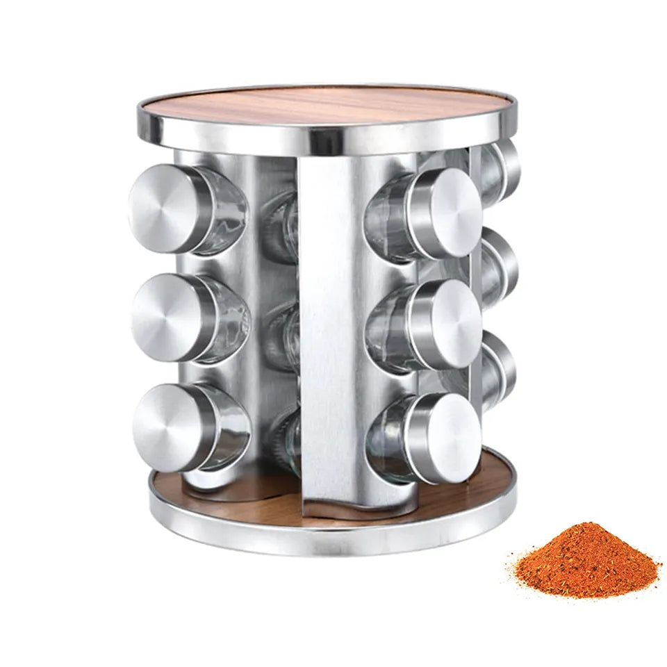 Craft your own unique flavor creations with this 12 or 16-piece wooden spice jar set. Easily access your herbs and spices, thanks to the rotating design, and store up to 12 or 16 different salts, spices, and seasonings. Enjoy the natural look of wood, while crafting your masterpieces with a professional feel.