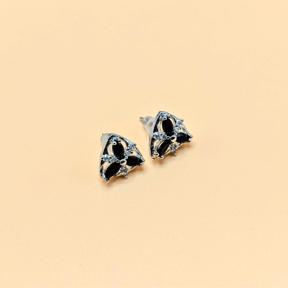 These stylish stud earrings feature a beautiful flower-inspired design with shimmering black and clear zircon stones set in a silver-toned alloy. The intricate detailing and contrasting colors make them a versatile accessory suitable for everyday wear, special occasions, or as a thoughtful gift. They offer a blend of sweet and fashionable style, adding a touch of elegance to any ensemble.