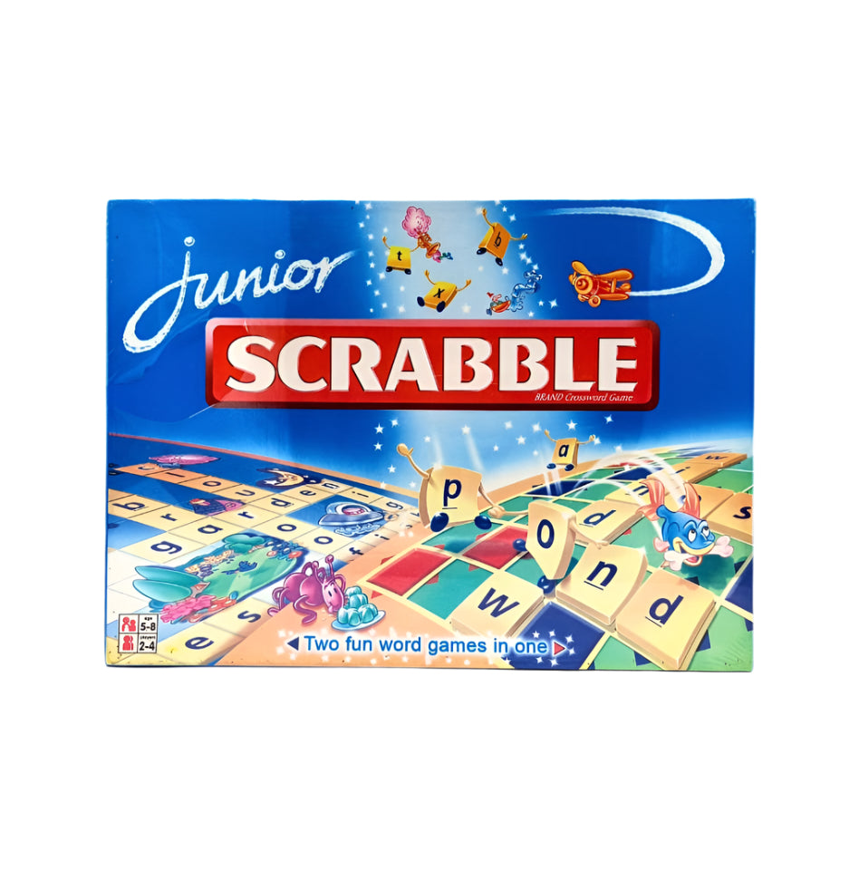 Introduce young learners to the world of words with Junior Scrabble! This 2-in-1 game features a colorful board with pictures to help kids match letters and form words. Flip the board for a more advanced game where older children can create their own words. Perfect for family game nights and educational fun.