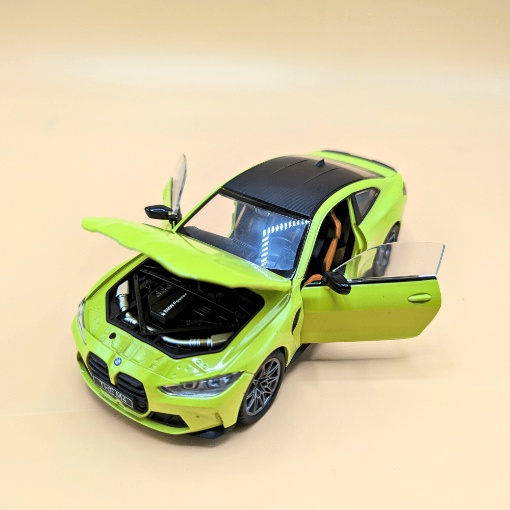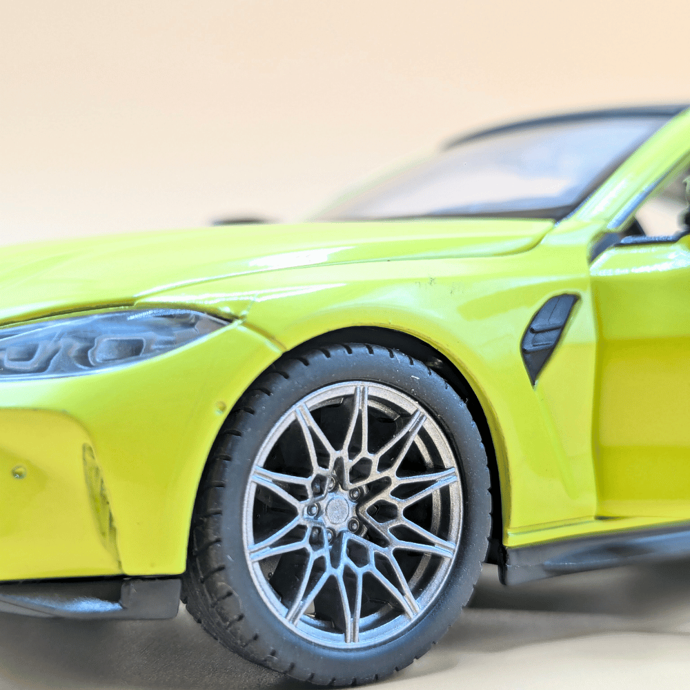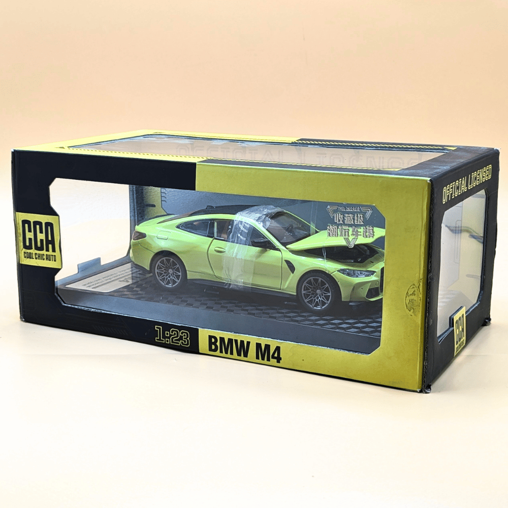 Get ready to add a touch of automotive excitement to your collection with this officially licensed 1:23 scale BMW M4 diecast model by Cool Chic Auto (CCA)! This meticulously crafted miniature captures the sleek lines and iconic design of the BMW M4, making it a perfect display piece for enthusiasts and collectors alike. Whether you're a fan of the BMW M4 or simply appreciate finely detailed model cars, this collectible is sure to impress.