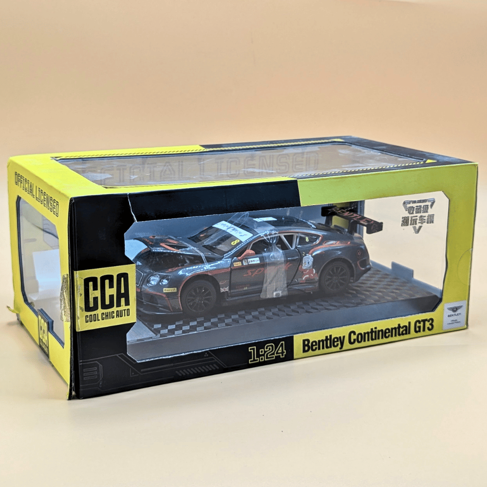 This is a fantastic collectible for car enthusiasts and racing fans! This officially licensed 1:24 scale diecast model of the Bentley Continental GT3 by CCA (Cool Chic Auto) comes in a clear display box, perfect for showcasing its intricate details. It's a great gift for anyone who loves high-performance cars or collecting detailed scale models.