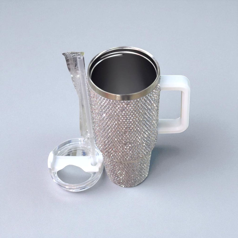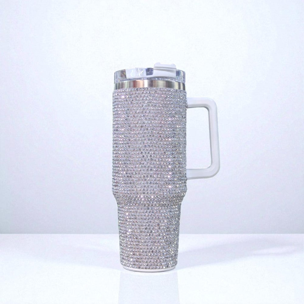 Stay hydrated in dazzling style with this stunning 40oz Bling Tumbler! Adorned with shimmering rhinestones, this tumbler isn't just a feast for the eyes – it's also incredibly practical. Featuring a comfortable handle, a secure lid, and often equipped with double-wall vacuum insulation, it keeps your favorite beverages at the perfect temperature, whether hot or cold, for hours. Perfect for daily commutes, gym sessions, or adding a touch of glamour to your everyday hydration, this eye-catching tumbler makes a statement wherever you go. It's also an ideal gift for anyone who loves a bit of sparkle!
